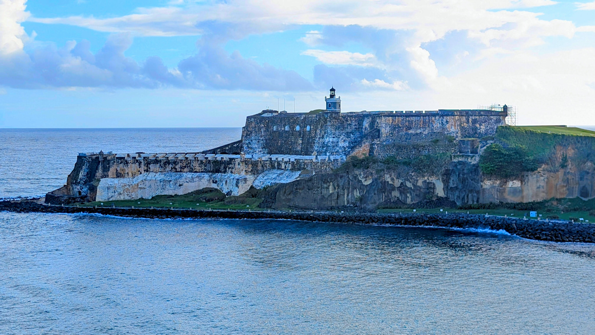 Another place the ship visited was San Juan, Puerto Rico. Here's a photo I snapped of the historic fortress known as El Morro, which sits at the entrance to the harbor. Sir Francis Drake's armada of warships tried to enter the harbor and attack the city in 1595, but the defenses at El Morro successfully stopped him. In fact, a cannonball shot from El Morro went right in to Drake's cabin! He survived, though.