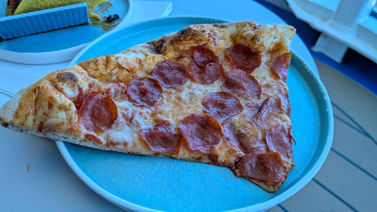 I know the shape of that pizza slice looks a little unusual. It's just because I requested a double-wide slice so that I could fold it over, New York style. It was as good as the pizza I had during a stay in New York City last year, and better than any pizza I had ever had on a cruise ship before.