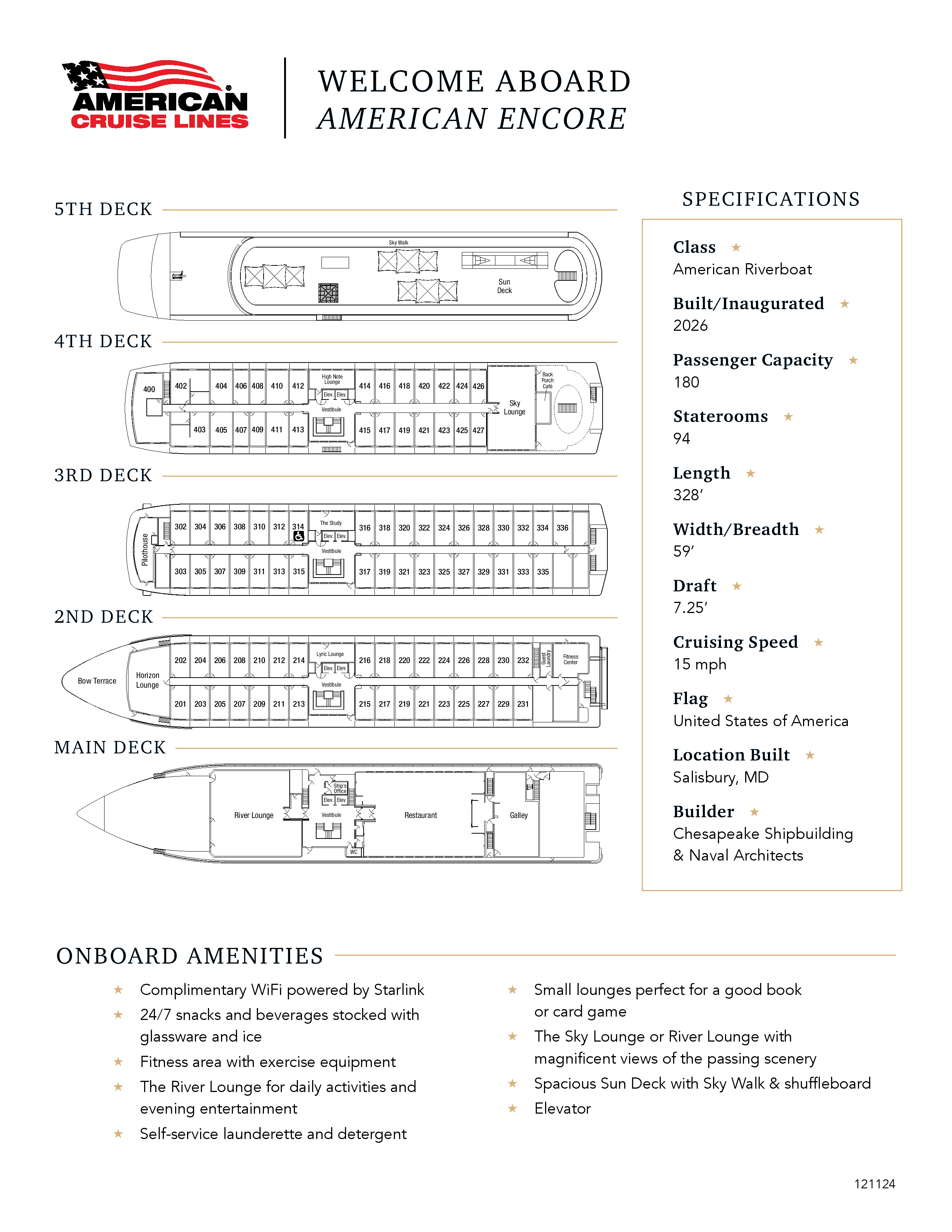 I've cruised with American Cruise Lines 10 times previously, plus once on their sister line, Pearl Seas Cruises. ACL is currently experiencing a huge surge of popularity, as word has gotten out about how well suited they are to seniors who are looking to cruise the rivers, lakes, and coasts of the United States. They're literally building new ships as fast as they can (they own their own shipyard!) and they've been been bringing a new ship in to service every four months to meet the demand. Because they fully control the design and build process, they can easily make design changes and improvements to each new ship based on the feedback they get from their crew members and passengers. With each new ACL ship I've been on lately, I've seen some interesting improvements... and from what I've seen about this upcoming new class of ships, they've incorporated all the best ideas from their last few ships in to this one.